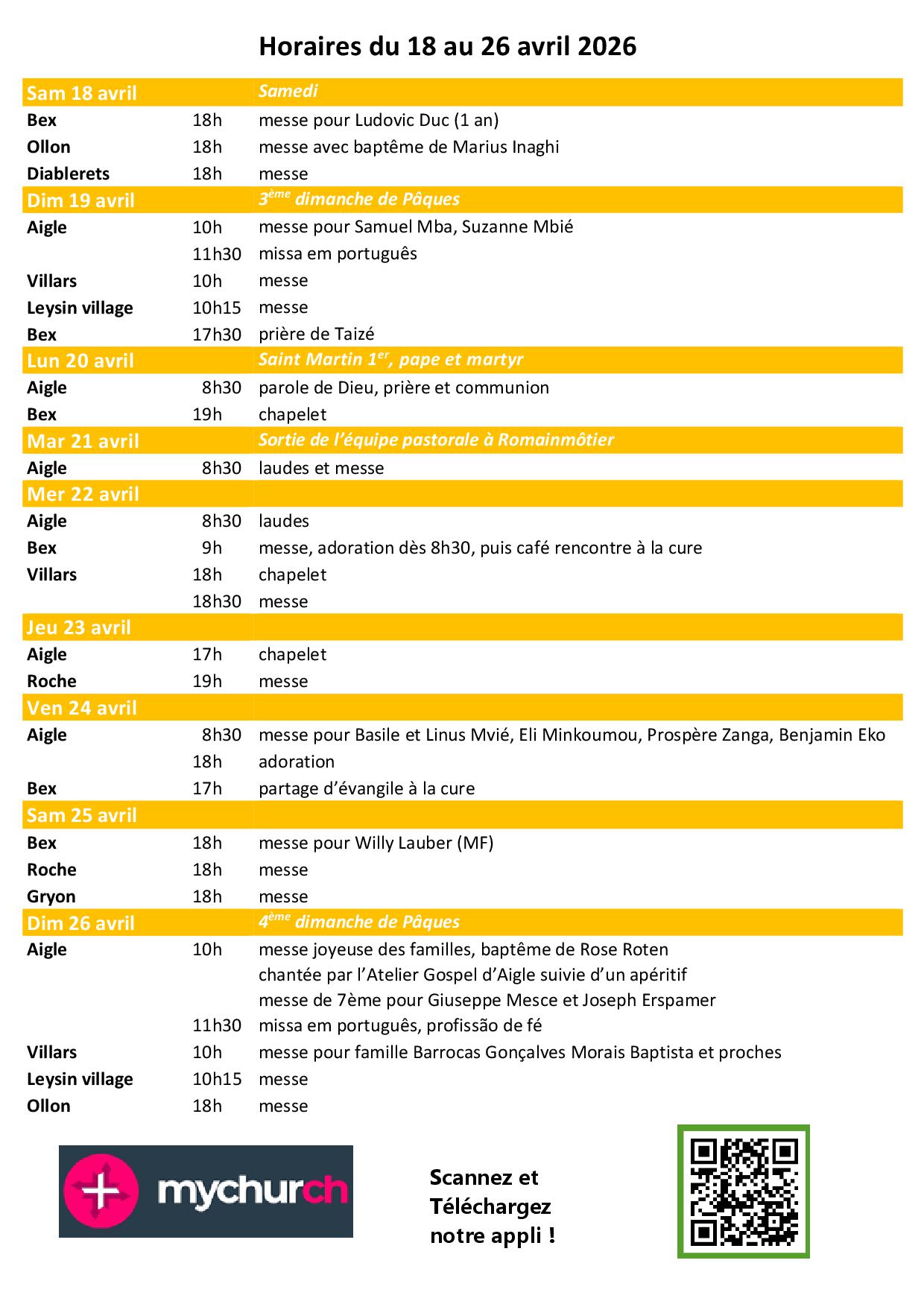 La paroisse St-Victor à Ollon compte environ 1'500 personnes et fait partie du secteur pastoral d'Aigle.