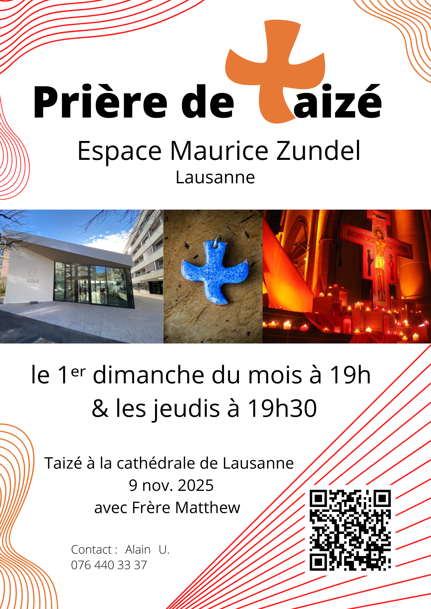 Bienvenue aux prières de Taizé à Lausanne, à l'Espace Maurice Zundel (EMZ), chaque mois.