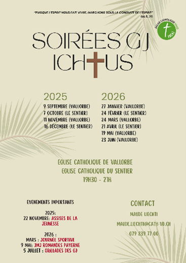 Ichtus est un groupe de jeunes catholiques de Vallorbe et de la Vallée de Joux. Bienvenue !