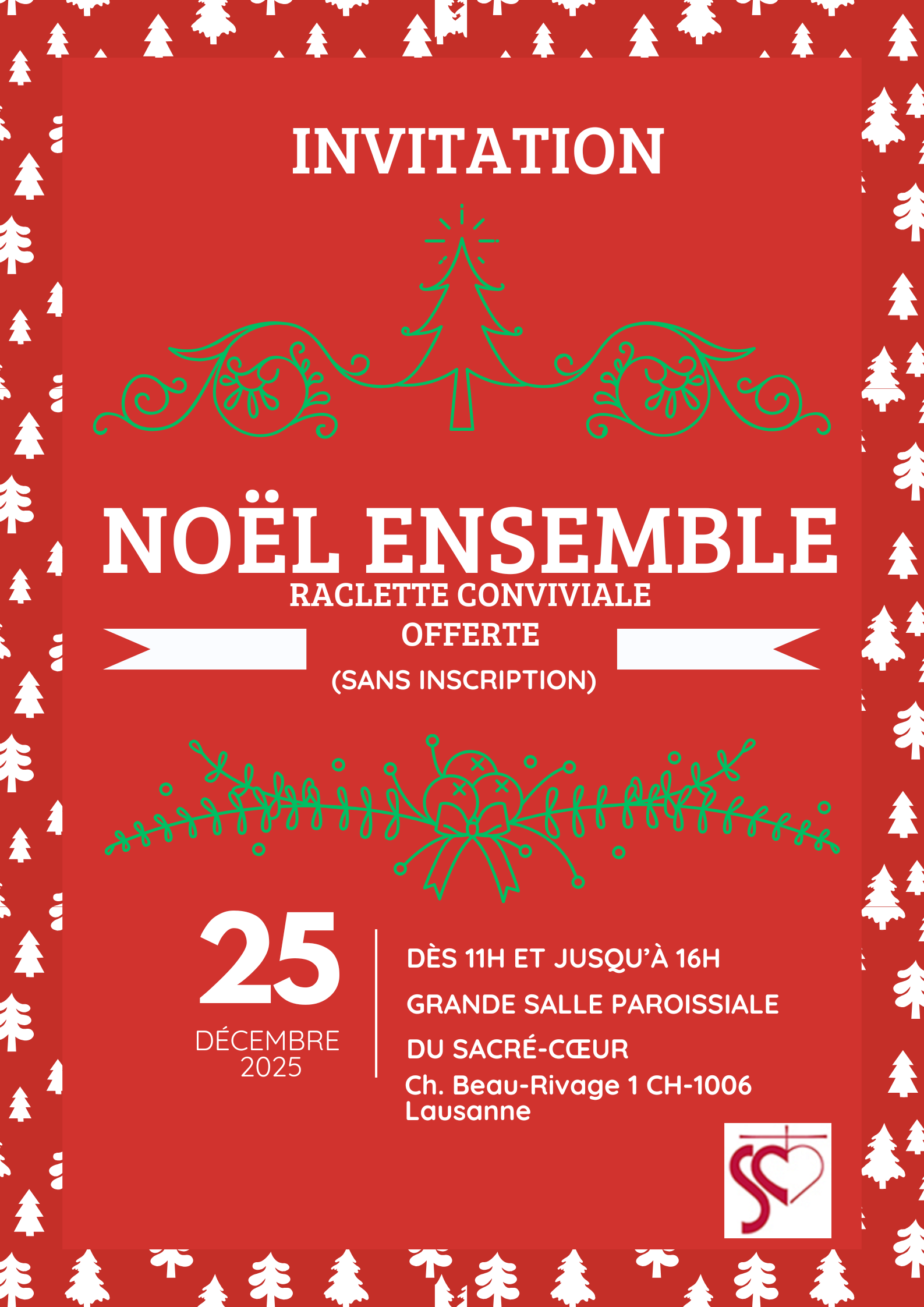 Vous êtes tous bienvenus à la paroisse du Sacré Coeur pour une raclette offerte.