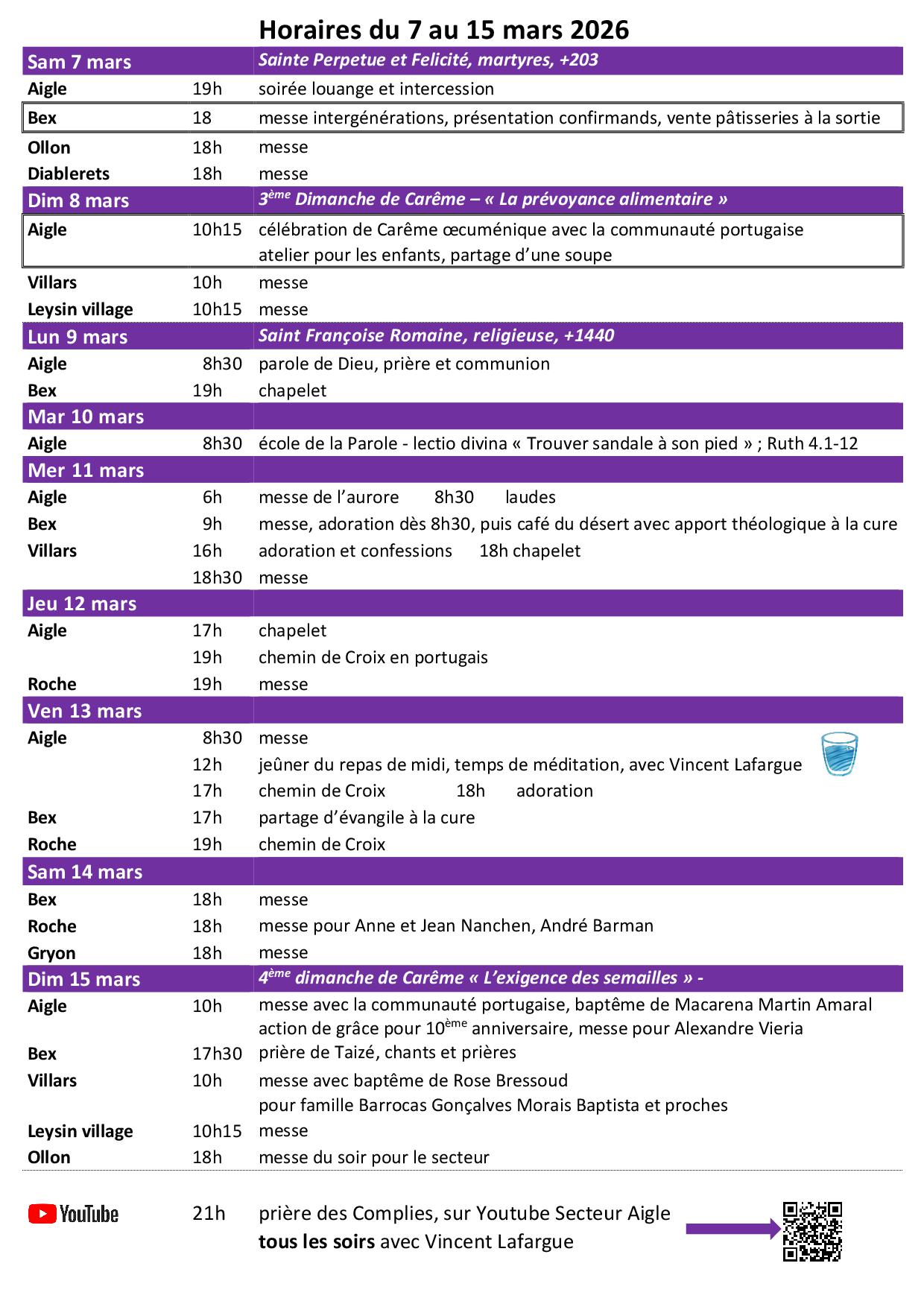 Une nouveauté durant ce temps de Carême - vous avez une raison de plus pour passer à l’appli « MychurCH » - chaque dimanche une prière et une mission vous seront proposées sous l’onglet « Infomesses+ ». Une petite semence hebdomadaire pour vivre ces 40 jours encore plus intensément !