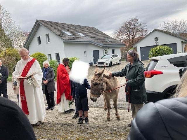 Dimanche 13 avril 2025, la fête des Rameaux est rendue bien vivante à la chapelle d’Apples. Anne-Dominique Thaler a organisé une petite marche à dos d’âne pour les jeunes. Mais les adultes sont aussi intéressés par ses explications et la visualisation de l’entrée triomphale à Jérusalem, de Jésus, acclamé par les mêmes foules qui le condamneront à mort quelques jours plus tard. Cela nous a bien préparés à la messe qui a suivi. C’est une belle initiative à refaire.