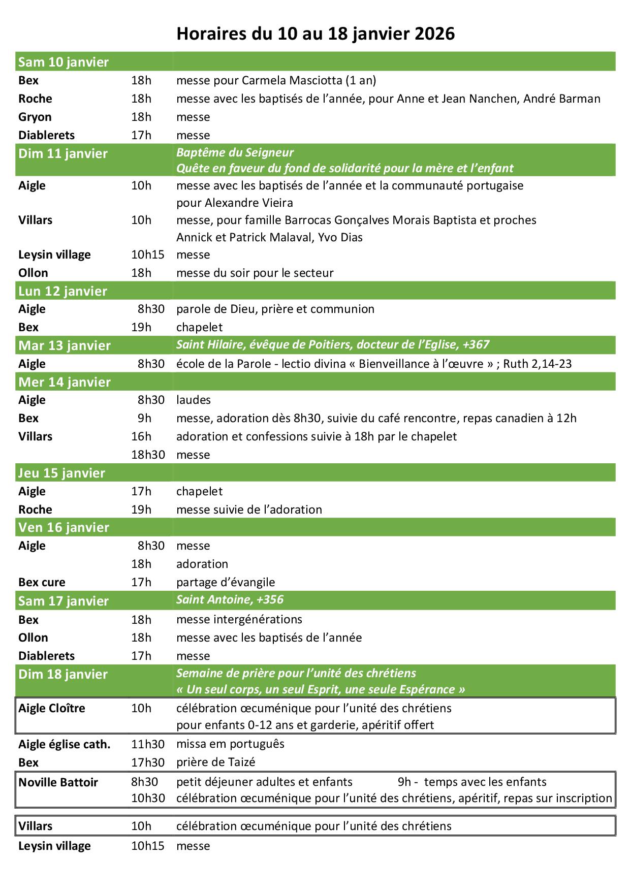 Agenda de la paroisse