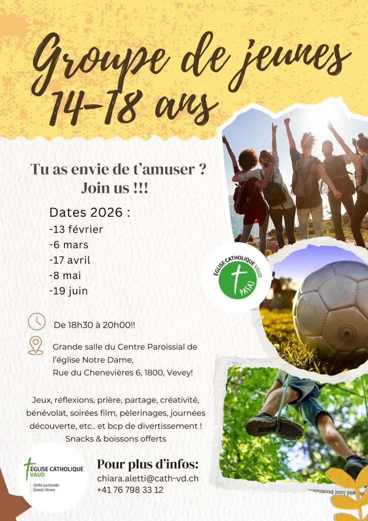 Du 28 septembre 2025 au 28 juin 2026, animation de la messe chaque dernier dimanche du mois (à l’exception du mois de décembre où la messe sera animée le 14 décembre 2025), discussion sur un thème lié à la foi et repas convivial